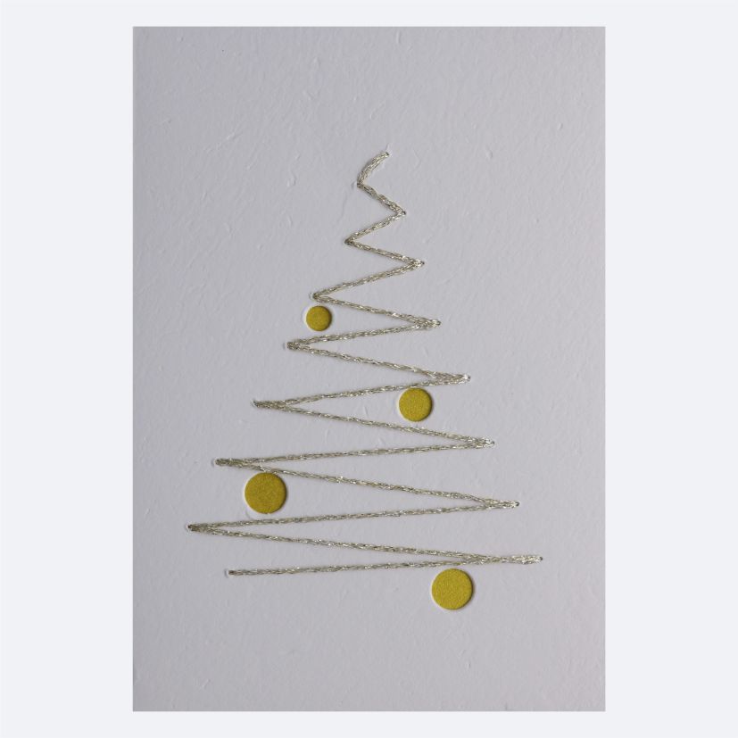 Die Tanne wurde mit Glanzfaden gestickt, die Kugeln gestanzt und farbig hinterlegt.